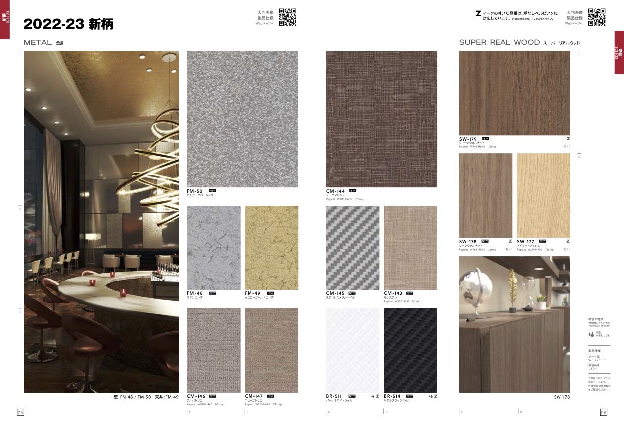 金属の質感を表現したシリーズです。CM,FM 品番には本金属を使用し、独自のテクスチャーとパターンで本物が持つ深みのある質感を表現しています。