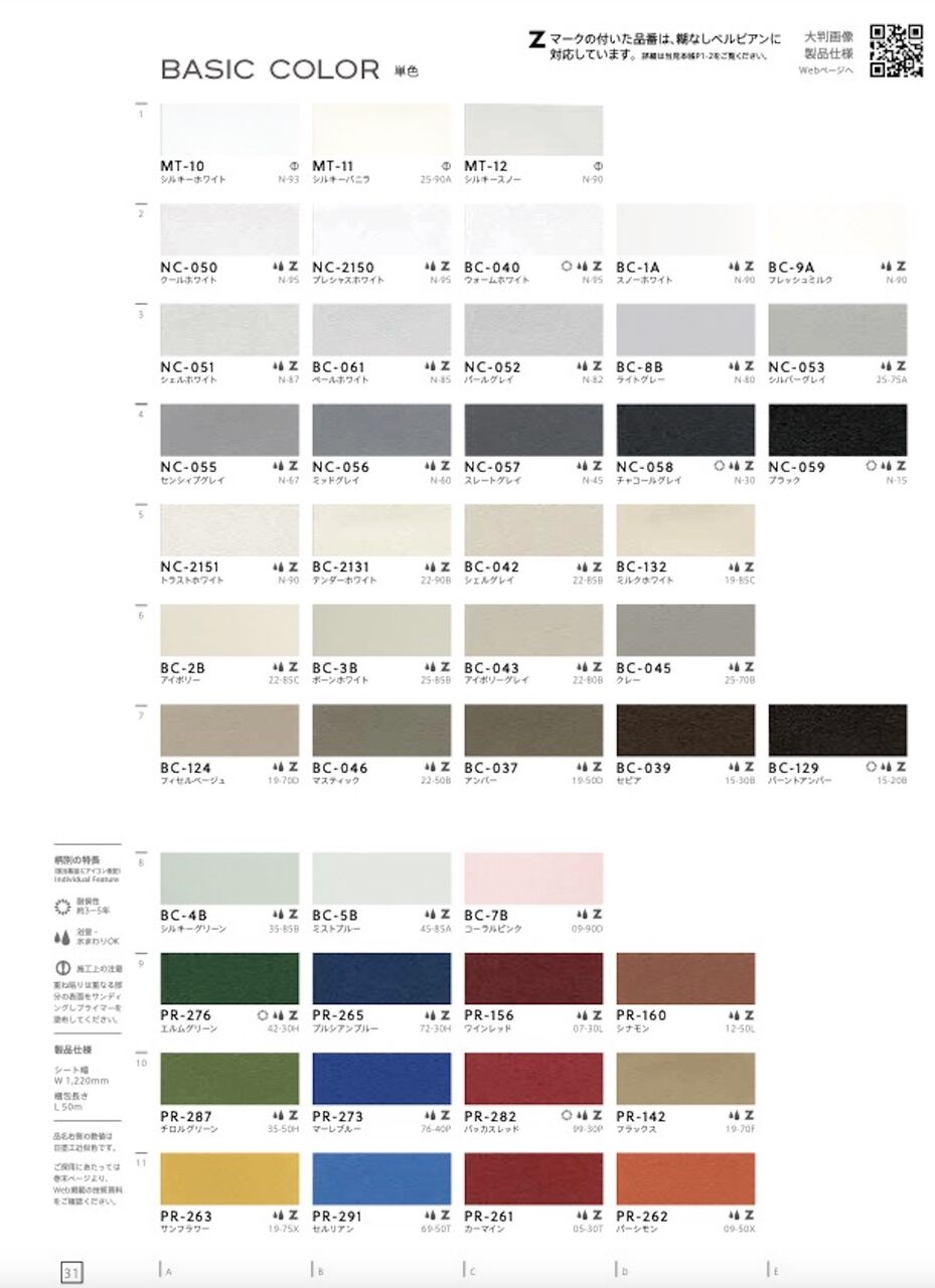 【粘着剤付き不燃認定化粧シート 送料無料】タキロンシーアイ BELBIEN ベルビアン ベーシックカラー(単色ウォーム) BC-046 マスティック 1m以上から10cm単位の販売(1巻あたり最長50mまで)