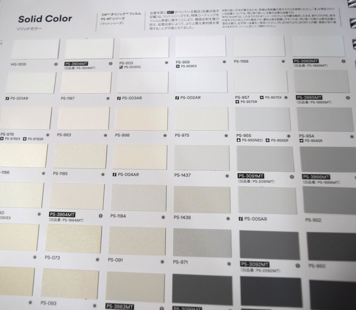 3Mダイノックカタログの実物サンプルの画像です