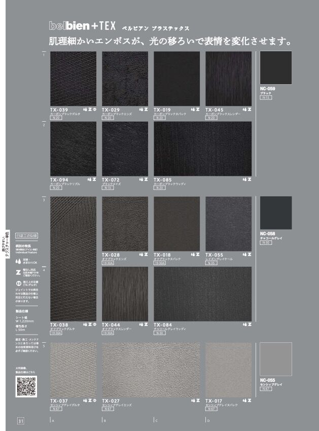 条件付き送料無料【粘着剤付き不燃認定化粧シート 】タキロンシーアイ ベルビアン プラステックスシリーズ TX-029 カーボンブラックエンズ 1m以上10cm単位で販売(1巻きあたり最長51mまで)
