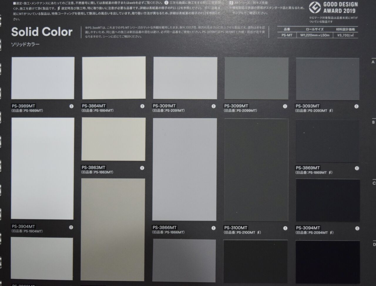 3M information 3M™ ダイノック™ 単色ソリッドカラーカタログと実画像の比較 ギャラリー 3M™ ダイノック™ 単色ソリッドカラーカタログと実画像の比較 マットタイプ(末尾にMT)の製品はソリッドカラーカタログとマットソリッドカラーカタログと併存しております マットタイプのソリッドカラーカタログ